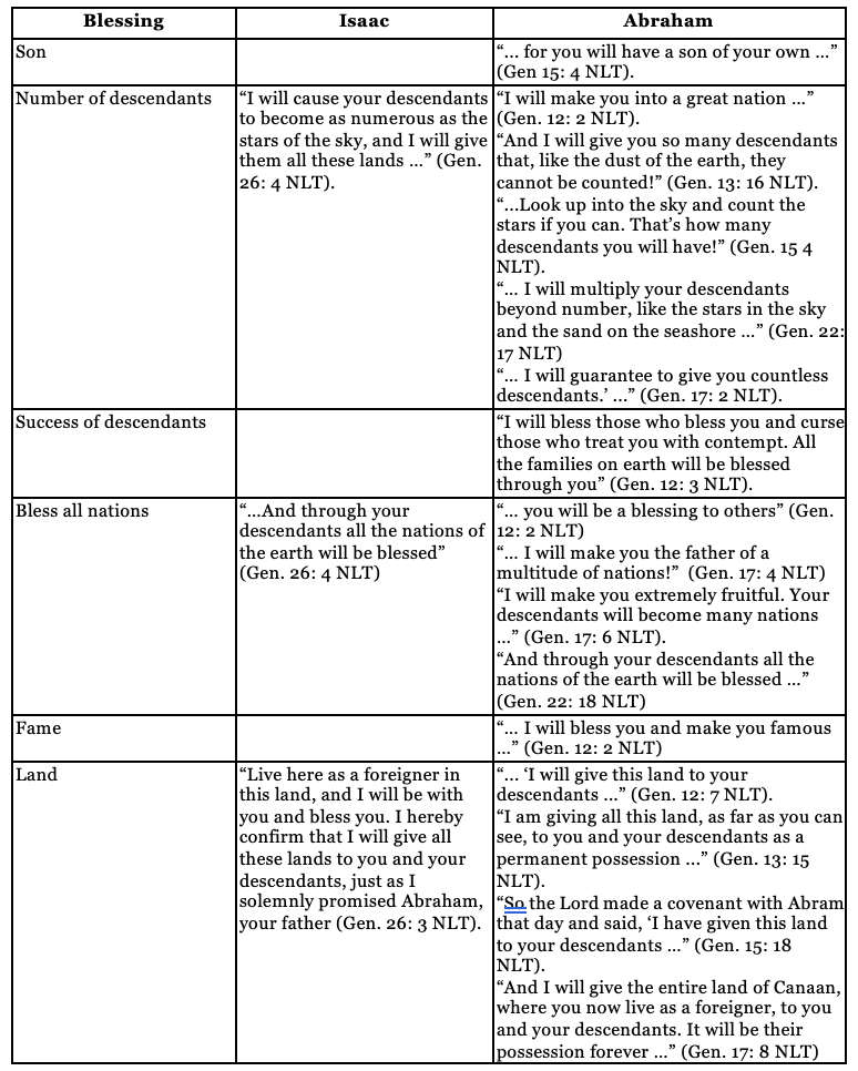 Nope. It had nothing to do with Isaac. Instead, “Understand, therefore, that the Lord your God is indeed God. He is the faithful God who keeps his covenant for a thousand generations and lavishes his unfailing love on those who love him and obey his commands” (Deut. 7: 9 NLT emphasis added).