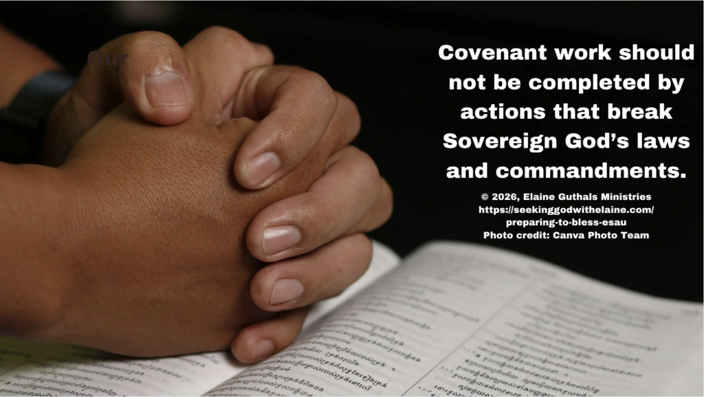 The ends do not justify the means. Covenant work should not be completed by actions that break Sovereign God’s laws and commandments.