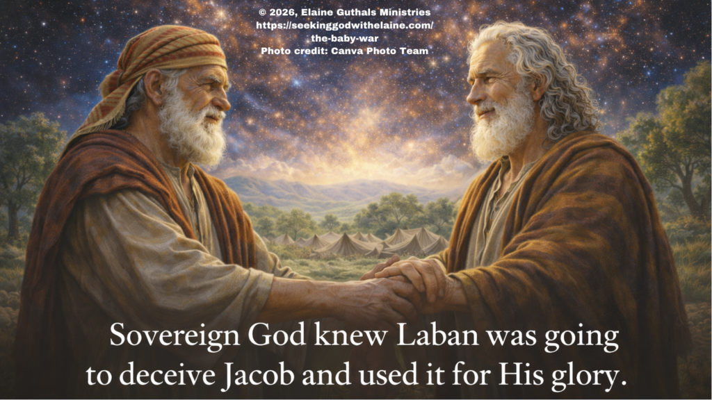 Sovereign God knew Laban was going to deceive Jacob and used it for His glory.