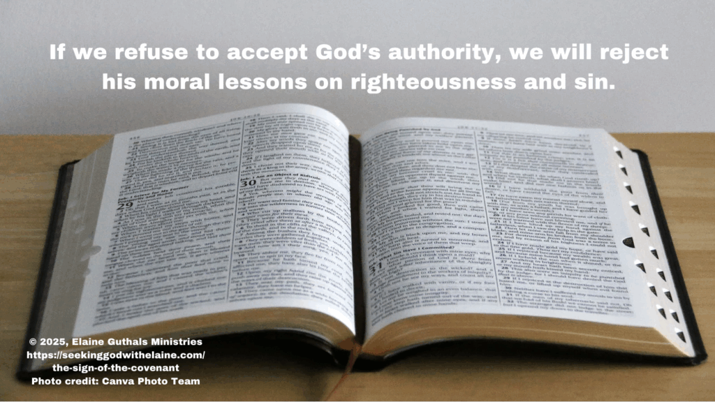 If we refuse to accept God’s authority, we will reject his moral lessons on righteousness and sin.