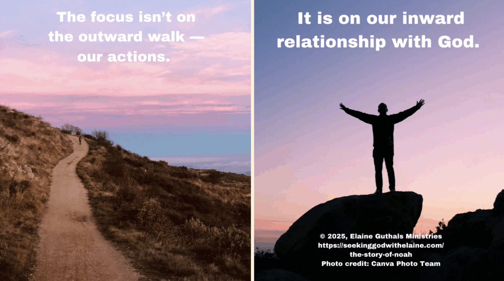 The focus isn’t on the outward walk — our actions. It is on our inward relationship with God.